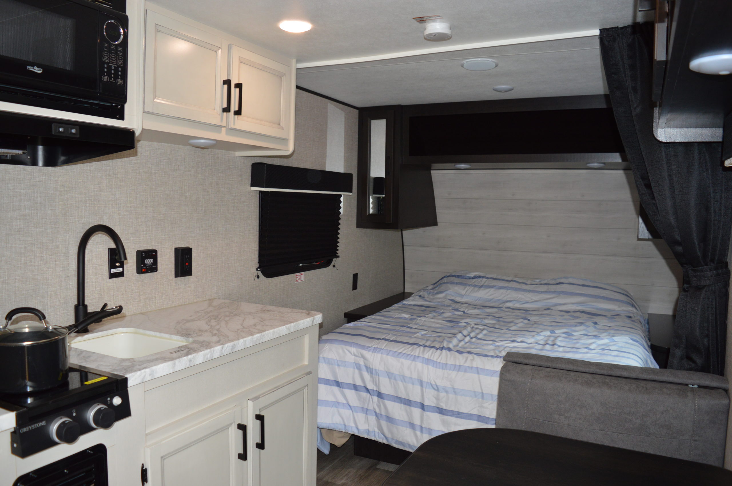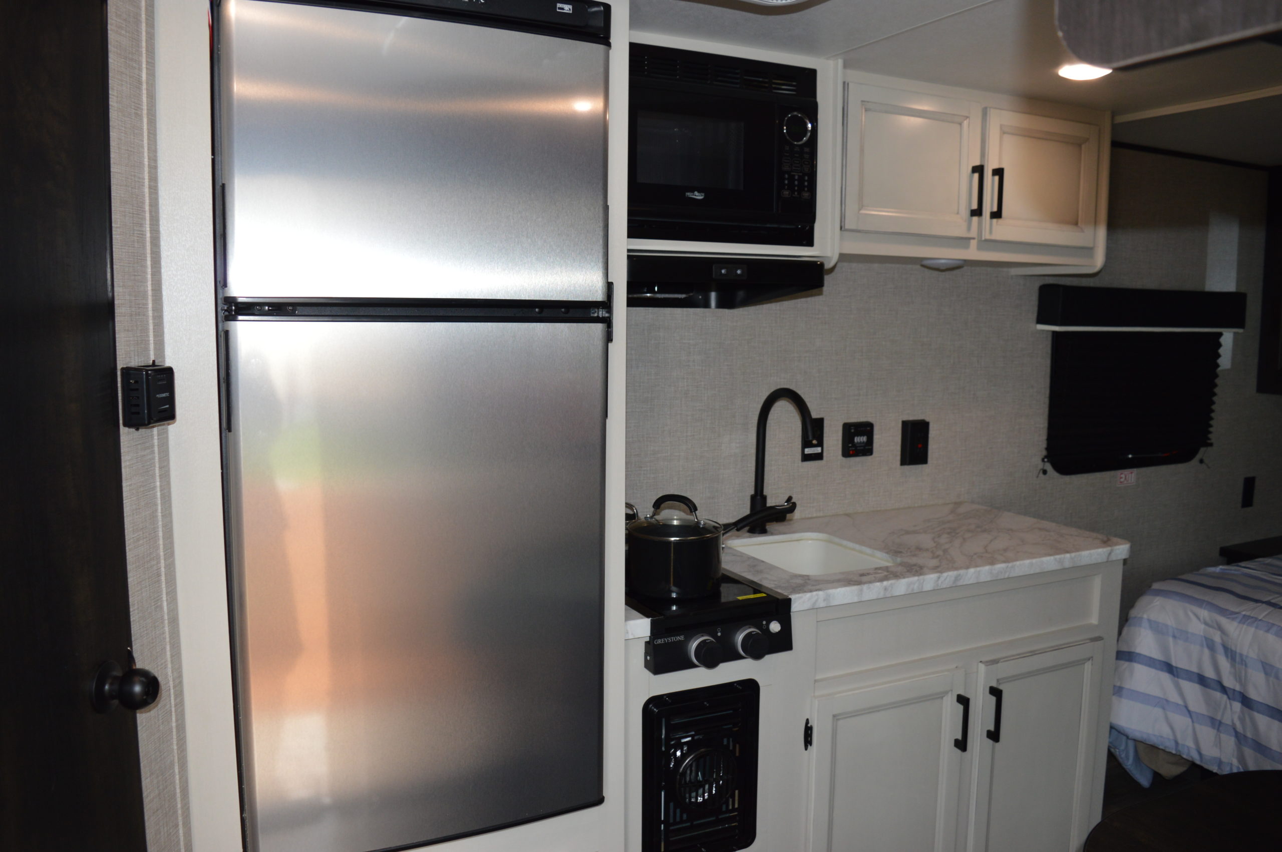 You’ll stay in a 2023 Jayco Camper that can accommodate 2 adults and a child. It has all the necessary amenities…..gas stove, microwave, large refrigerator and freezer, full bath, Bluetooth, Wi-Fi, air conditioning and TV.